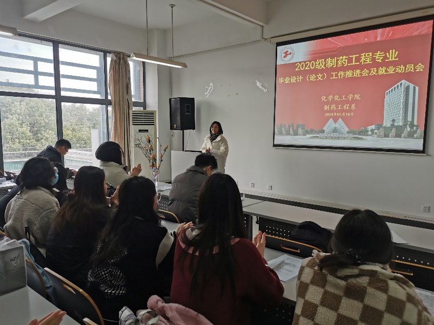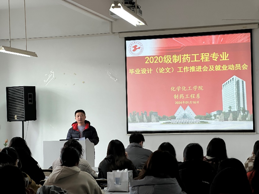 就业工作是最重要的民生工程,就业工作不停歇。临近学期末,bevictor1946韦德官网制药工程专业为促进应届毕业生学业和就业,1月16日在实训楼4418召开全体毕业生毕业设计(论文)工作推进会暨就业动员会,引导员工积极应对经济形势对就业的影响,实现员工高质量毕业论文及充分就业,制药工程系主任王晗、部分教师代表、辅导员和全体毕业生参会。