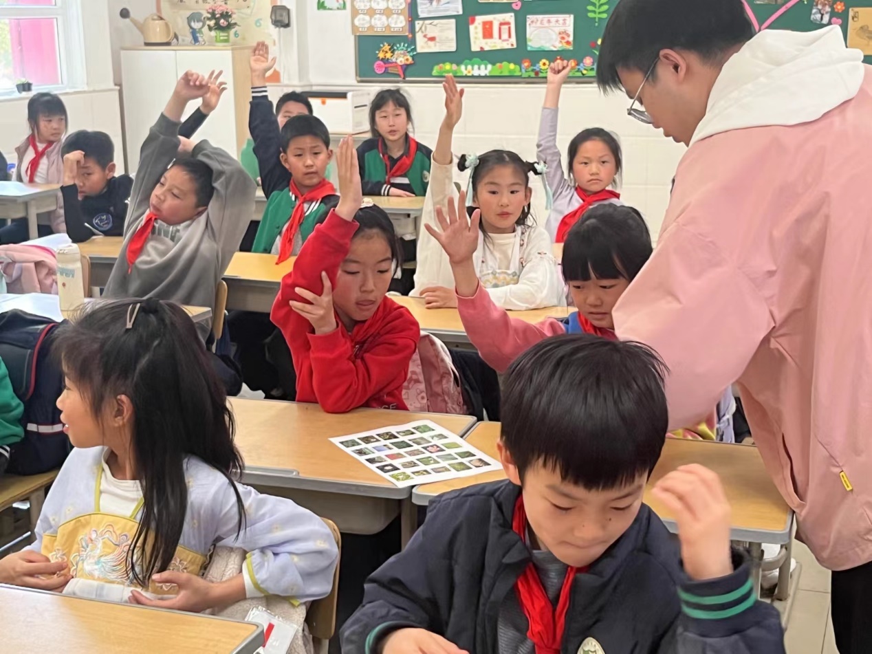 环境工程专业党员教师顾敦罡带来了一场以“什么是绿色力量?”为题的讲座,他将碳中和、生物固碳等比较抽象的概念做了形象化的阐述,向小朋友们解释了什么是“绿色力量”,碳中和与“绿色力量”有什么关系,如何壮大“绿色力量”。讲座结束后,环境工程专业本科生程子帆、潘嘉琦主持了活动课后半段的游戏环节。他们带领小朋友们看图识记一些上海常见的植物和飞鸟,并以挑战赛的形式激励小朋友在规定时间里记住尽可能多的物种名。小朋友们兴致高涨,争先答题应战,潜移默化中增加了对本市动植物多样性的了解。
