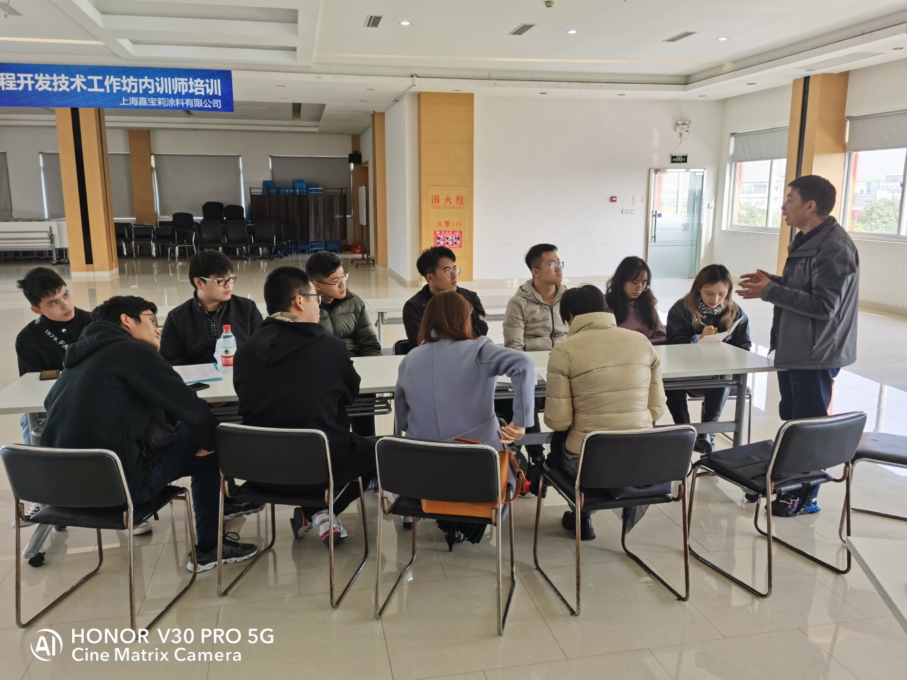 首先王继虎主任针对在嘉宝莉实习的9位同学,就毕业论文开展的有关要求和细节进行了说明。在企业带教老师允许的条件下,尽量详细记录实验数据,尽可能留下实验过程和样品状态的照片,对于任何样品都要从系统性、专业性、学术性角度进行理论联系实际的分析、讨论与总结。同时及时和公司带教老师沟通,按期汇报企业实验进度。同行的高分子材料与工程副系主任李唯真、陈凯敏和杨靖霞老师毕业论文的开展进行了补充,对员工提出了一些形而有效的建议。