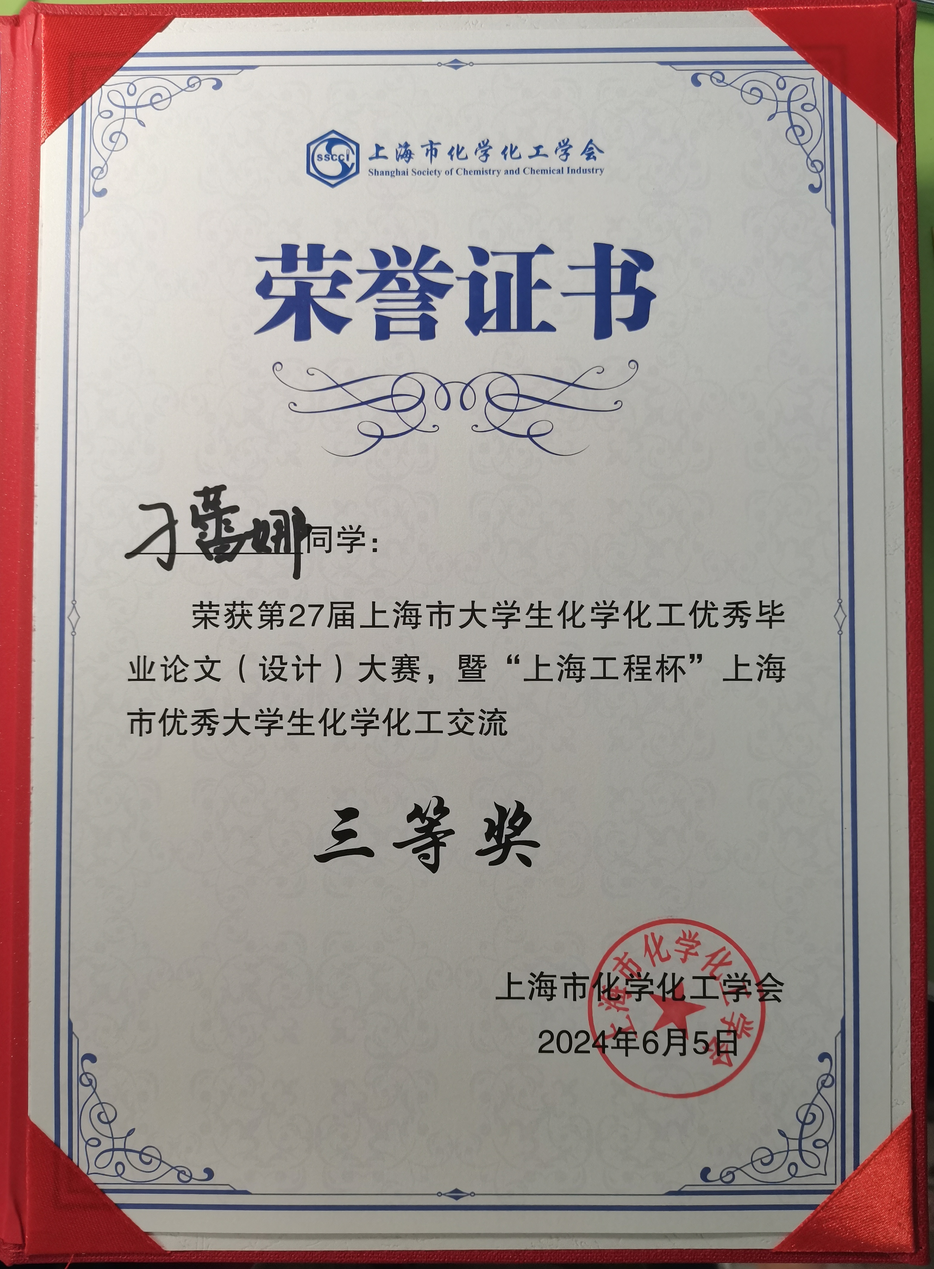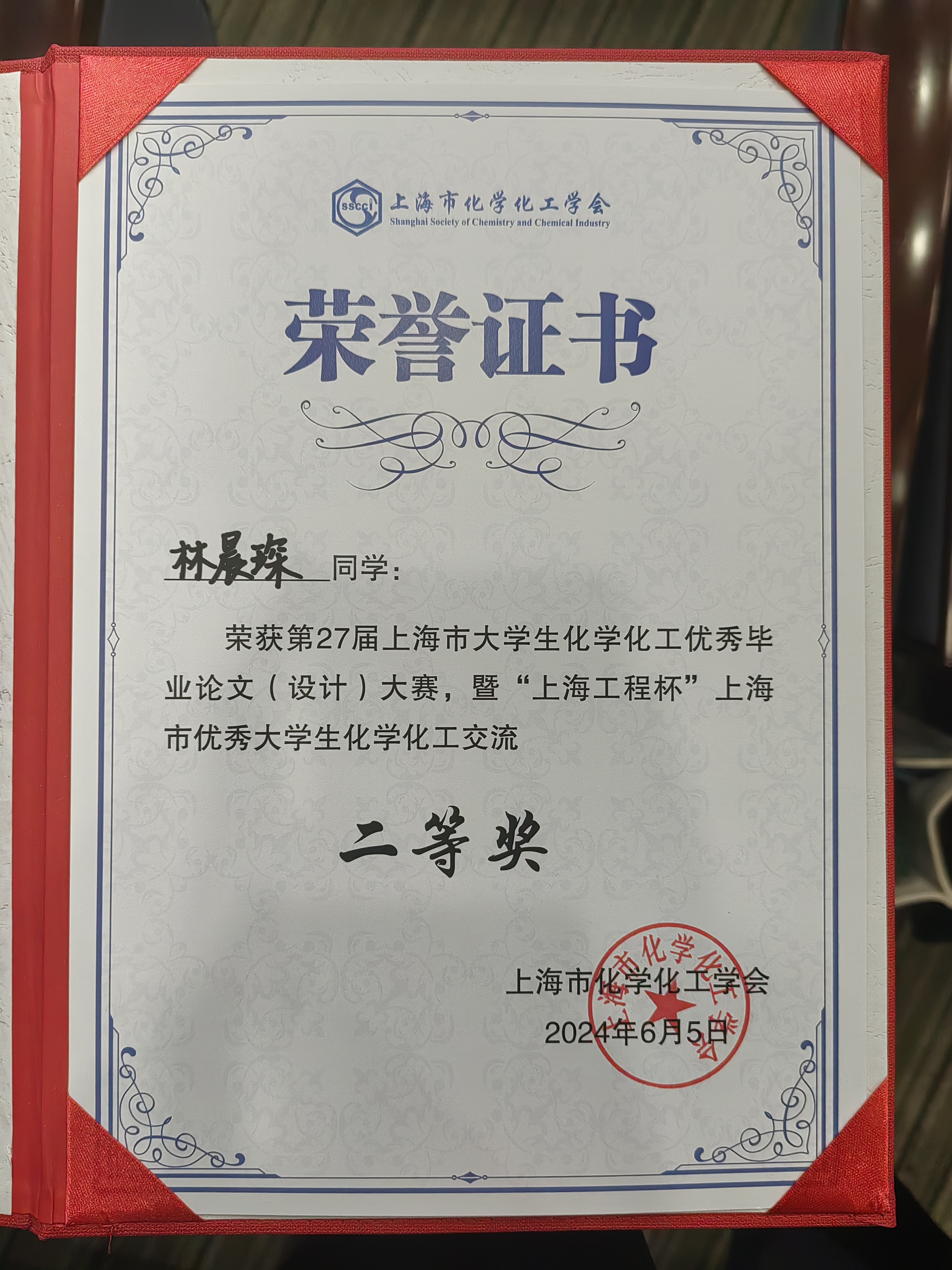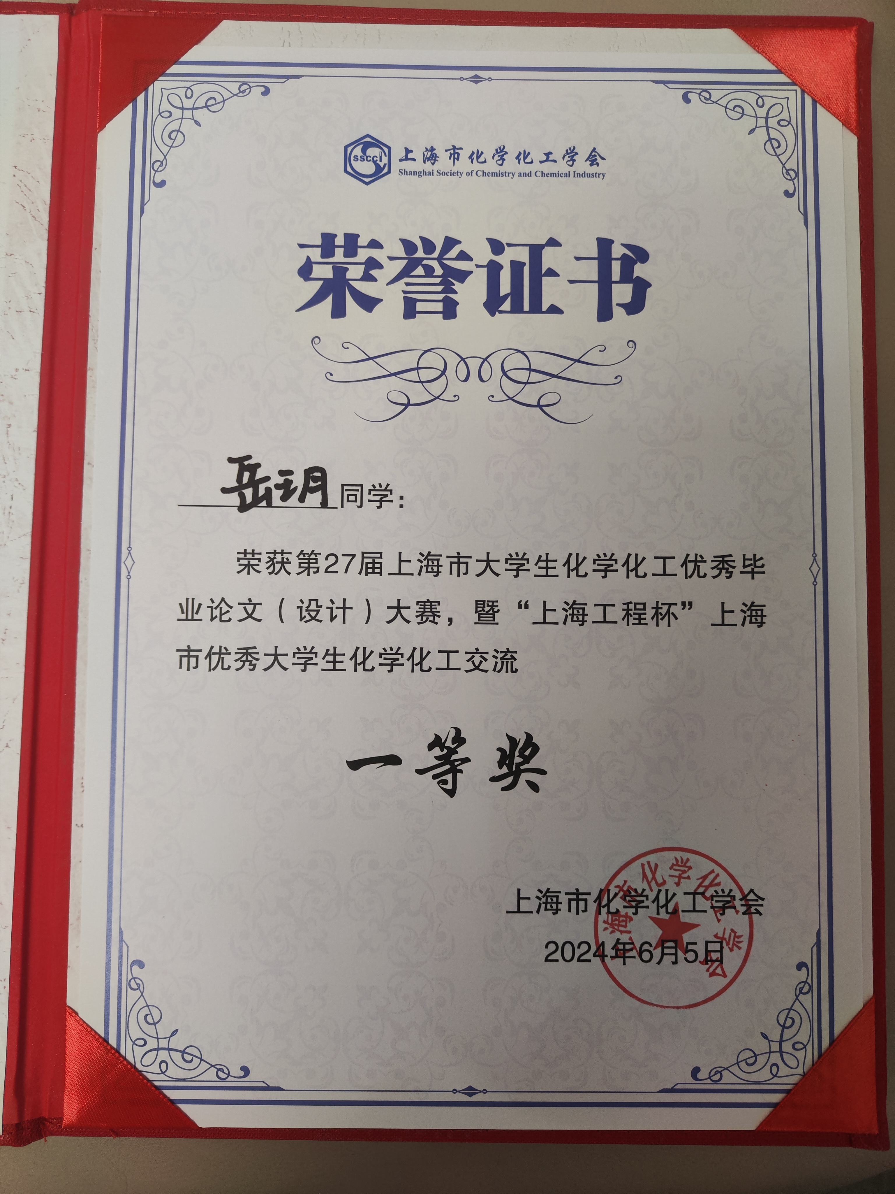 公司高度重视本次大赛,经过层层筛选,推荐岳玥、林晨琛、刁蕾娜三位同学参加优秀论文大赛。经大赛评委交叉盲审初评,现场激烈答辩角逐,三位同学以详实的数据、创新性的实验结果、规范的论文撰写和优秀的现场表现,脱颖而出,获得评委高度肯定,获得了一二三等奖的成绩。最终,制药工程专业岳玥(指导老师:陈玲艳)获得一等奖,环境工程专业林晨琛(指导教师:郝宗娣)获得二等奖,化学工程与工艺专业刁蕾娜(指导教师:王金果)获得三等奖。