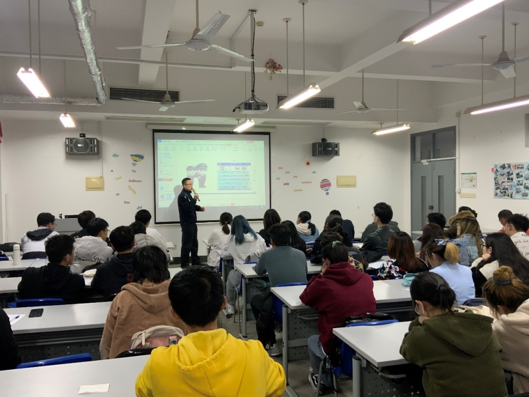 钮军警官的演讲十分细致,同学们也认真听讲,踊跃参与讲座后的问答环节,现场气氛活跃。本次讲座有利于提高同学们的自我保护意识、有助于同学们正确的价值观、消费观的形成。