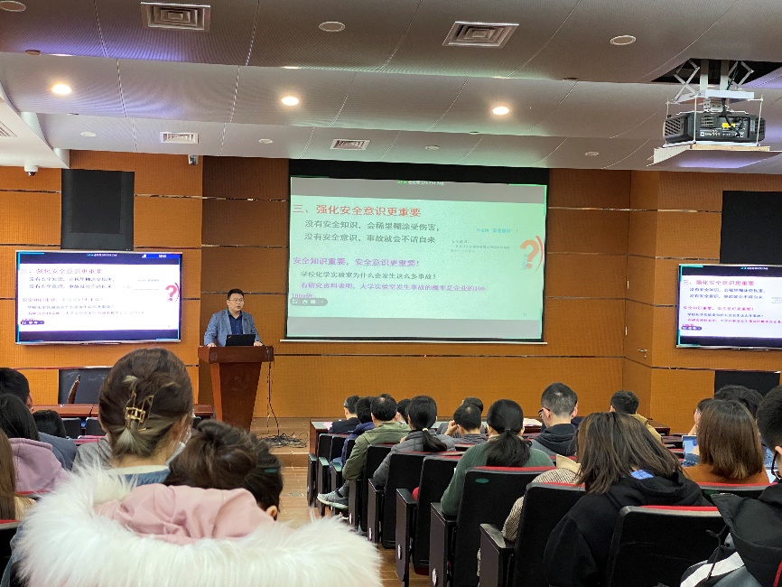 首先,化学化工公司党委副书记秦颖针对电信网络诈骗和心理卫生安全问题对公司师生展开安全教育。对常见的电信网络诈骗手法、识别方法、防范和补救措施进行了介绍。针对心理卫生安全问题,呼吁师生学会正确处理负面情绪,必要时可与公司心理中心专业老师沟通。