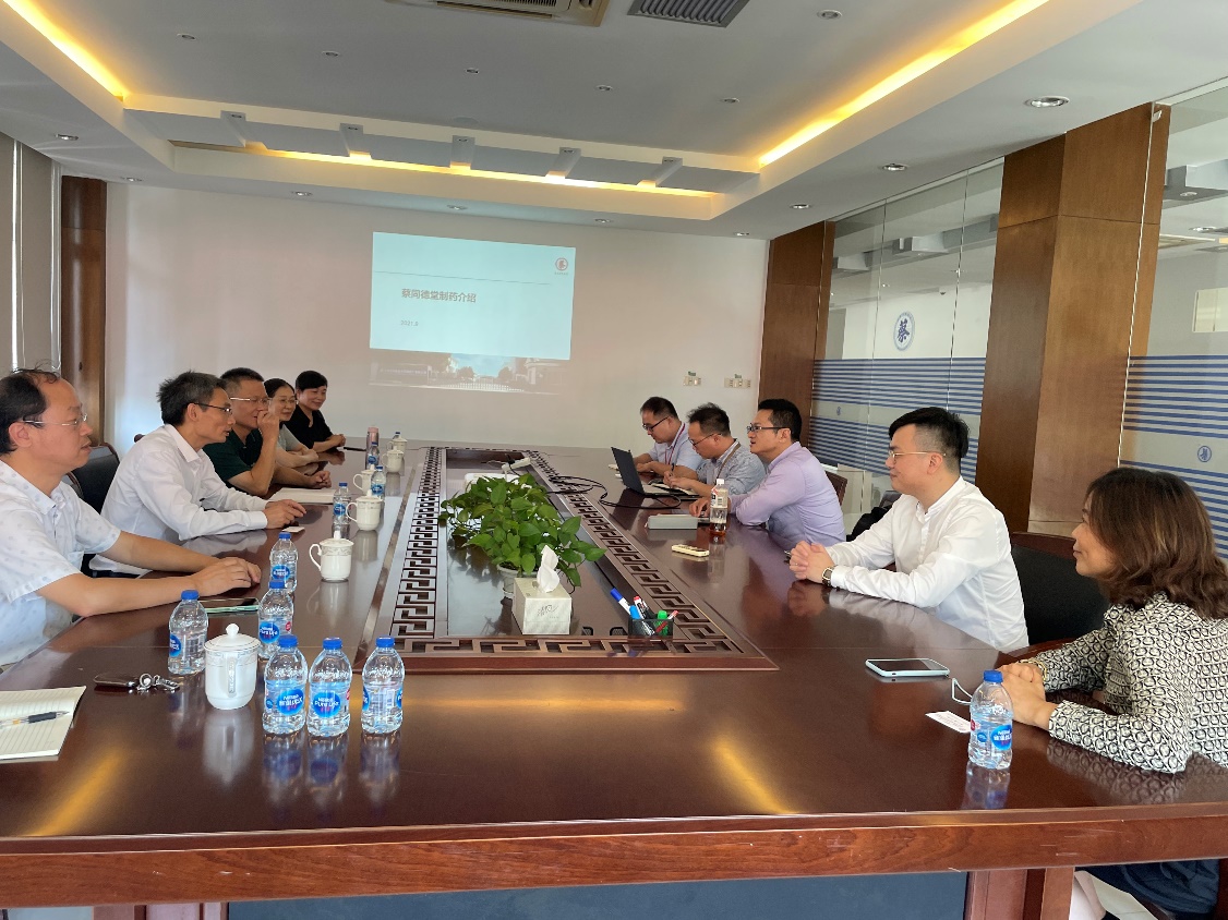 9月27日下午,公司医药前沿技术研究院副经理袁春平、单宏丽,bevictor1946韦德官网经理饶品华,骨干教师尹学博、尹小英等一行走访上海蔡同德堂中药制药厂有限公司。公司董事长范宇丰、首席执行官罗珉、厂长刘余敏等参加交流会。
