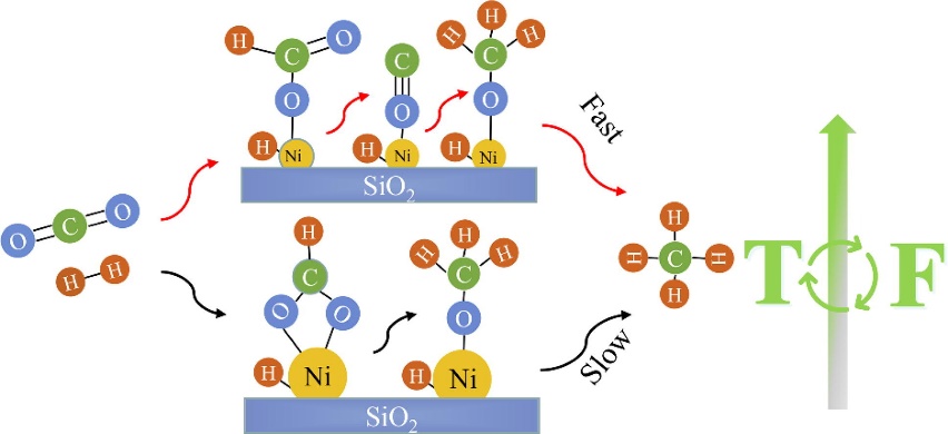 基于惰性载体巧妙设计目标镍基催化剂,实现了Ni的粒径效应与载体效应/金属负载量的解耦作用,突出强调Ni的粒径效应对反应活性、甲烷选择性和CO2加氢制甲烷反应路径的影响。此项研究成果发表于能源领域国际TOP期刊《Fuel》(系中科院SCI分区2020年12月最新升级版工程技术大类一区Top期刊,IF=6.609),题为“Decoupling the size and support/metal loadings effect of Ni/SiO2 catalysts for CO2 methanation”(https://doi.org/10.1016/j.fuel.2021.121388, 第一作者:王康,通讯作者:门勇教授)。
