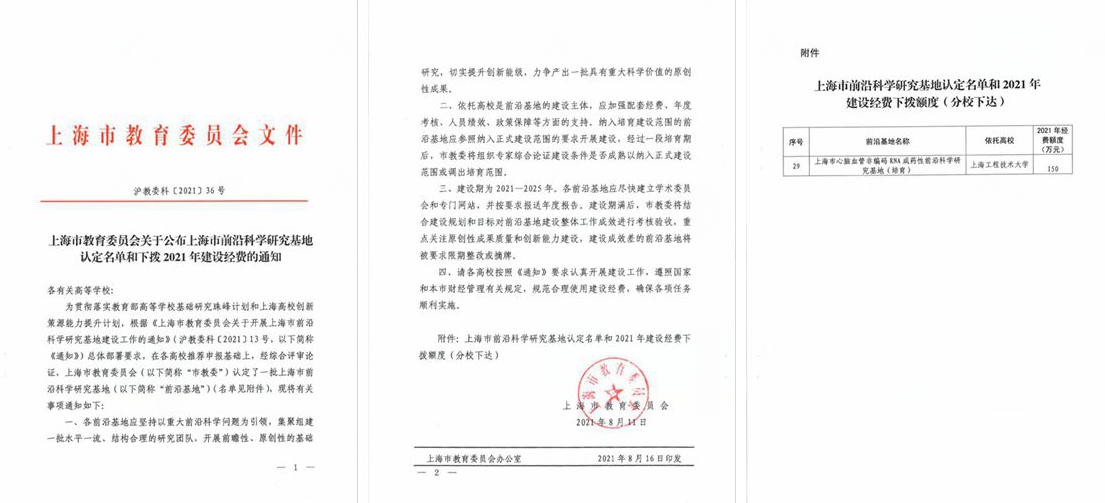 近日,上海市教委公布了前沿科学研究基地认定名单,公司bevictor1946韦德官网牵头申报的上海市心脑血管非编码RNA成药性前沿科学研究基地(培育)获批立项,建设周期为2021-2025年。