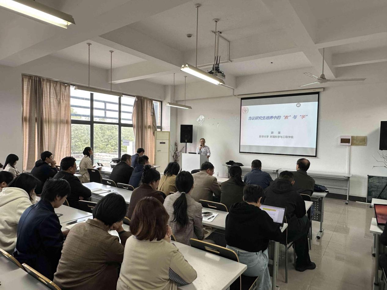 11月11日,bevictor1946韦德官网于实训楼4418开展研究生导师培训,东华大学博导、水污染控制学科带头人薛刚教授围绕“刍议公司产品中的‘教’与‘学’”主题和公司82名导师共探育人路径。