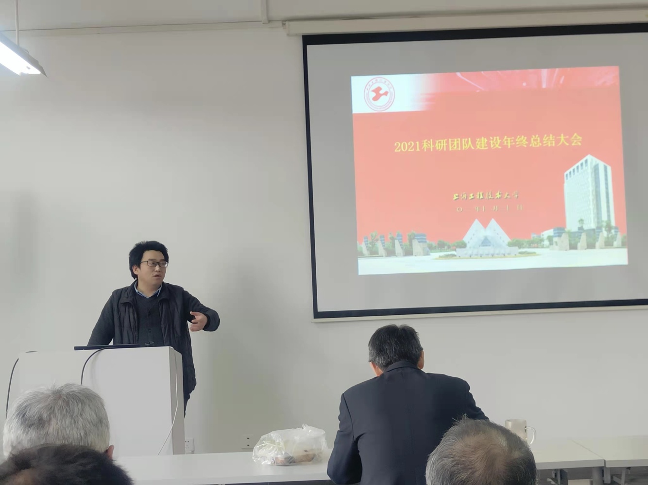 会上,环境与资源创新中心(李光辉教授)、微纳制造先进材料研究中心(孙韬教授)、功能高分子材料(王锦成教授)、污染物控制与资源化技术(张文启教授)、有机功能材料(吕爱风教授)、新能源电池(芮一川副教授)、先进催化技术(门勇教授)、药物活性物质(尹小英教授)、药物分析与高效化(张敏教授)、先进Smart涂料(温绍国教授)、计算化学创新研究(安炜教授)11个科研团队重点围绕科研项目申请和获批情况、科研奖项申报、学术交流活动、校企合作和公司产品等方面进行了汇报交流,他们既总结了成绩和经验,也分析了存在的不足和问题,同时也介绍了下一年度的工作计划和主要建设目标。陆杰教授对各科研团队研究方向、团队成绩以及未来建设目标等进行了详细点评,并对2021年度国家级项目申报、省部级以上科学技术奖励申请等重点工作进行了部署,并希望各团队充分发挥凝聚力,整合团队资源,进一步凝练研究方向,在各自的研究领域取得更好的成绩,形成鲜明的特色。广大教师结合自身的科研工作经历交流了见解和看法,现场气氛热烈。