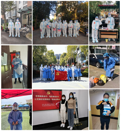 党支部书记张晓普带头在社区报名做疫情防控志愿者,组织带领社区居民进行核酸检测、帮助社区搬运发放生活物资和抗原检测物料。员工党员龚逸群积极参与社区抗疫活动,负责分发抗原试剂盒和防疫中药、上门帮助居民投放生活垃圾和转运快递。员工党员吴阳在生活园区担任宿舍楼党小组组长,发放餐食、数据统计、通知传达,配合公司疫情防控工作开展。入党积极分子邵心怡得知社区防疫需要志愿者的信息,第一时间报名参加,在居委会党组织的带领下,负责居民基本信息摸排、维持核酸检测队伍秩序。入党申请者潘禾丰响应公司团委号召,报名成为校内疫情防控核酸检测的志愿者,引导同学们进行垃圾分类、运送抗疫物资、维持排队秩序。