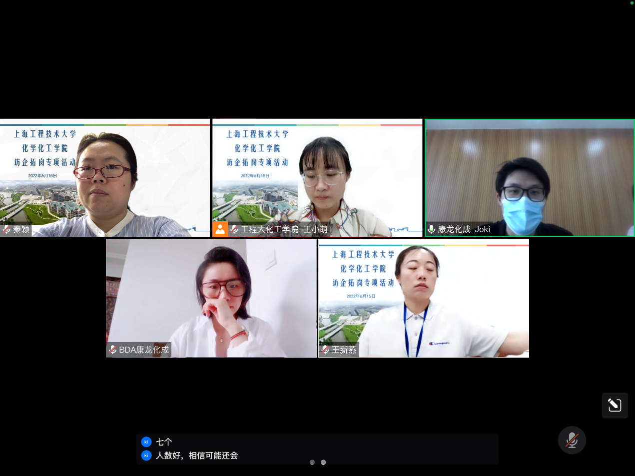 为贯彻落实中省及公司关于毕业生就业工作的决策部署,深入推进“访企拓岗”就业专项行动,助力公司毕业生更加充分更高质量就业,615日下午,公司党委副书记秦颖、公司就业专职辅导员王小萌、毕业班辅导员王新燕线上走访康龙化成(上海)新药技术有限公司,校园招聘经理都丽瑶,校园招聘上海负责人丁家琪出席本次线上走访。