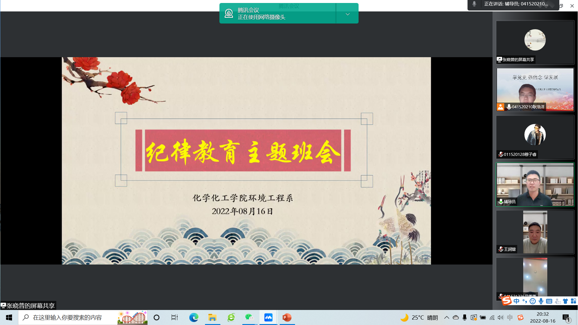 环境工程系召开线上思想政治教育主题班会