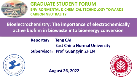由公司环境与化工过程集成优化国际联合实验室举办的研究生论坛于2022年8月26日线上举行。本次研究生论坛的主题是“面向碳中和的环境与化工技术”,来自英国曼彻斯特大学、日本东北大学、上海交通大学、华东师范大学、东华大学、上海理工大学、上海师范大学、浙江工业大学、北方工业大学等十余所国内外院校的近百名研究生线上参加。论坛经初筛选取17研究生就最新的科研进展进行了全英文汇报交流。