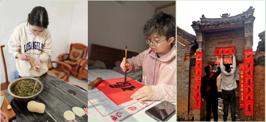“践”,参与一项中国优秀传统文化的传承发展活动。以传统春节为契机,同学们积极参与和发现身边能够呈现中国优秀传统文化的新年活动,如写春联、剪窗花、守岁、拜年、祭祖、制作传统美食、参加庙会等,用实际行动弘扬和传承中华优秀传统文化,不断增强文化自信和文化自觉,主动为建设文化强国做出自己的贡献。