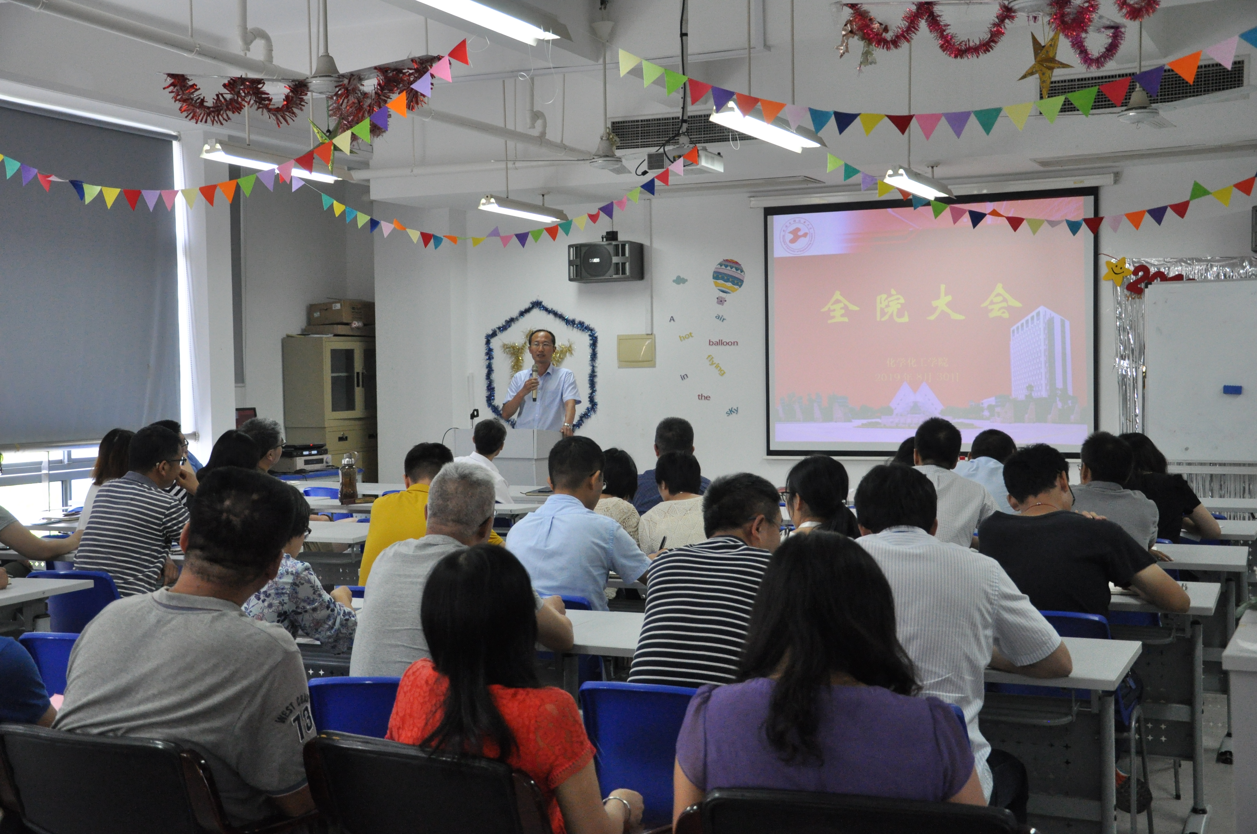 8月30日下午,公司在实训楼4405会议室召开全院大会,全体教职工参加了会议,会议由饶品华经理主持。
