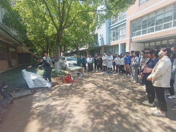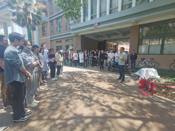逃生演练结束后,保卫处消防科吴挺老师对员工进行了灭火器、灭火毯实操培训,并现场演示了灭火器和灭火毯的使用,在场的员工们在学习与演练的过程中进一步加深了对消防器材使用方法的理解与认识,并掌握了灭火器和灭火毯的使用技能。