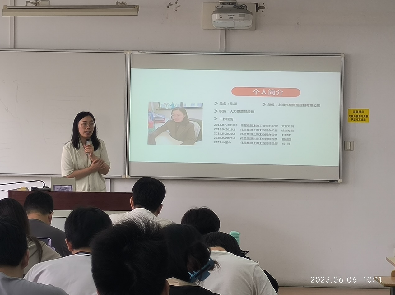 6月6日,上海伟星新型建材有限公司在教学楼A302开展校园招聘宣讲会,伟星集团上海工业园综合部经理朱潇来校为高分子、涂料专业员工开展招聘宣讲会,bevictor1946韦德官网团委书记郑文静老师主持。