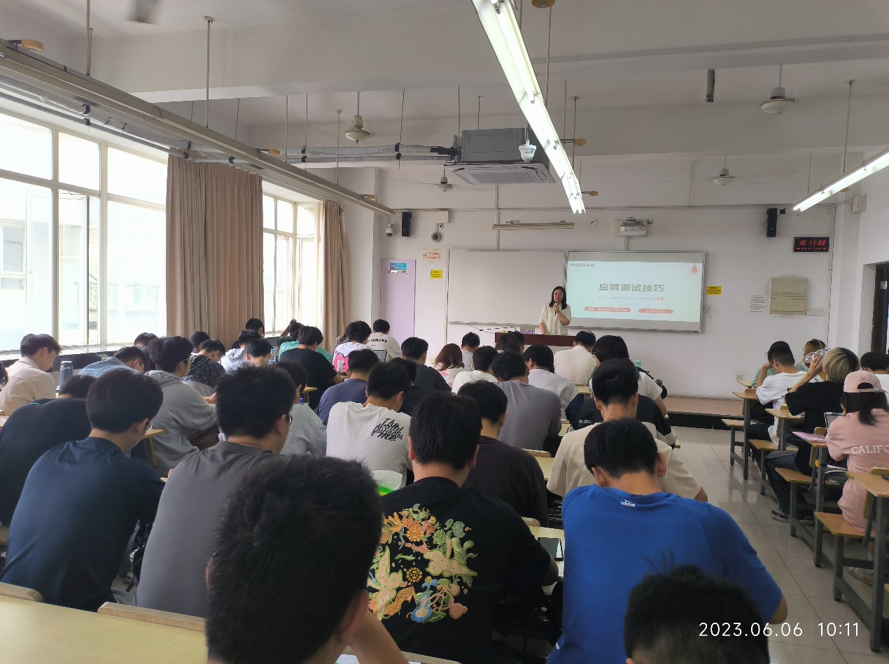 招聘宣讲中,朱经理向同学们介绍了伟星集团的企业定位和职员培养,员工们积极互动,了解就业岗位信息。同时,朱经理还现场指导员工如何进行招聘面试,注意细节,如何避免员工在招聘面试中普遍出现的问题,竭力帮助员工顺利就业。