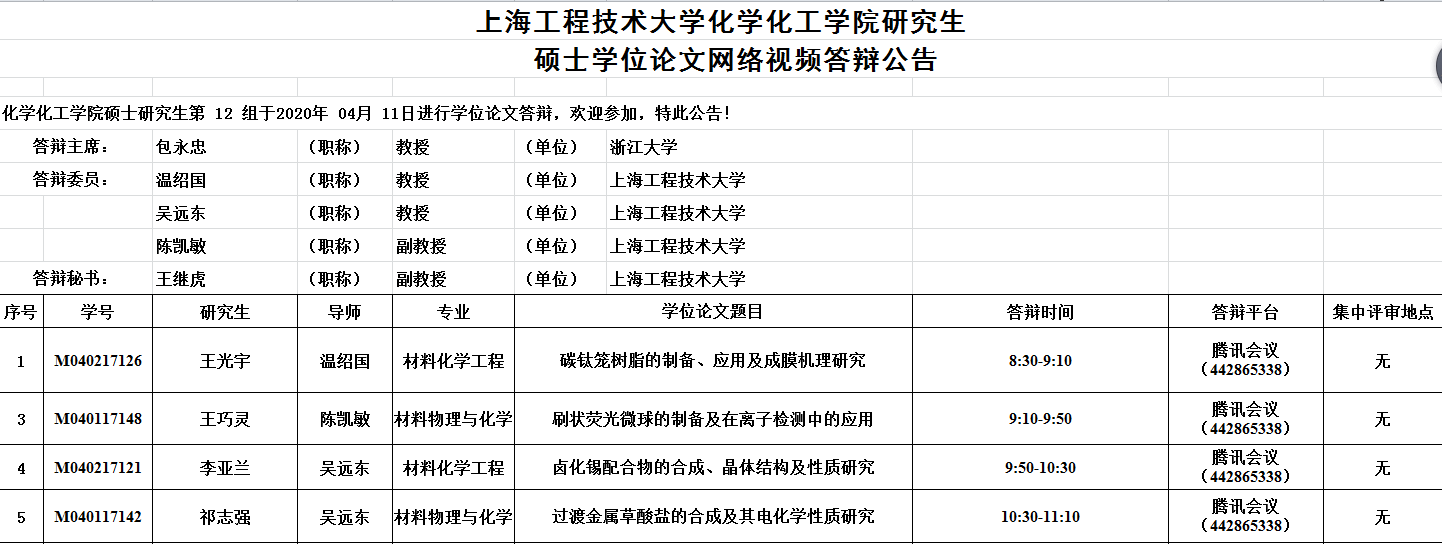 bevictor1946韦德官网化工公司研究生硕士学位论文网络视频答辩公告-4月11日第12组