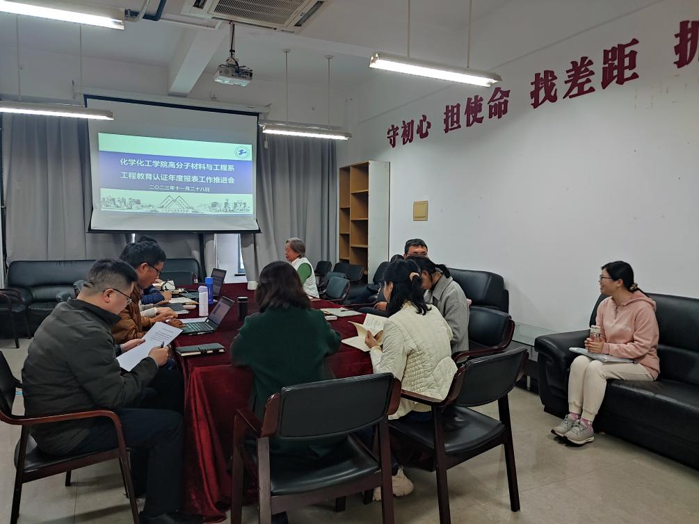 为了做好工程教育认证年度报备工作,切实落实持续改进机制,早启动早谋划,11月28日上午,在实训楼4号楼4404室,高分子材料与工程系召开了工程教育专业认证年度报备推进会。会议由高分子材料与工程系主任王继虎主持,高分子材料与工程系全体教师参加了会议。