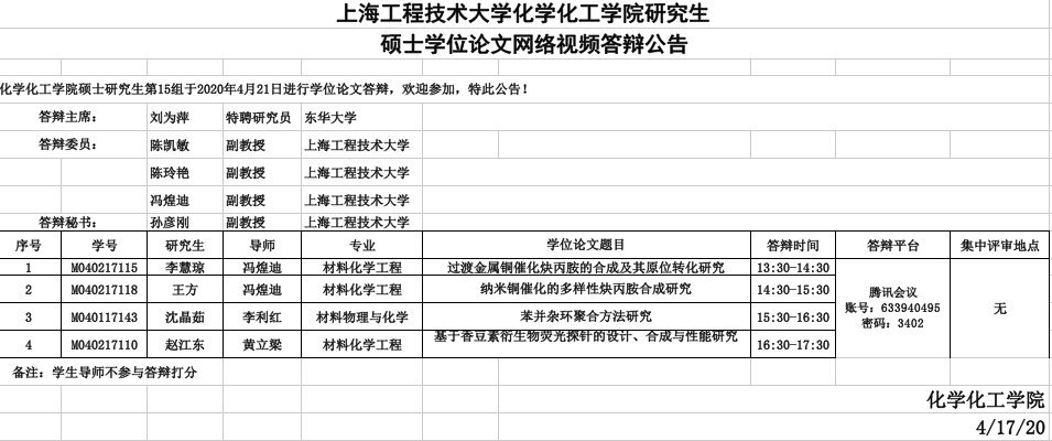 bevictor1946韦德官网化工公司研究生硕士学位论文网络视频答辩公告-4月21日第15组