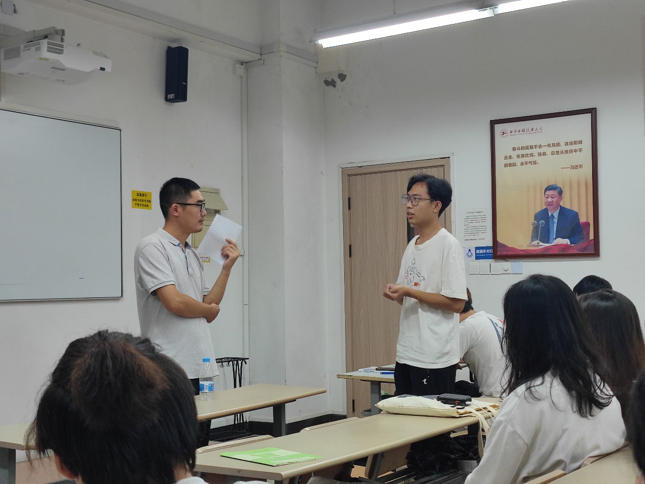 为做好新学期的学风和班风建设,22级环境工程专业于9月21日晚召开1班和2班集体班会,班主任老师顾敦罡、刘阳出席并主持。班会上,全体师生首先欢迎了远道而来的6位交流生同学。随后,部分同学分享了过去一年的学习和生活感悟,环境1班班长葛佩儀、2班班长薛珏分别汇报了班干部工作情况。两位班主任老师重点就学业成绩和生涯规划问题进行了指导,强调学习是老员工的第一要务。两位老师还就同学们提出的有关课程学习、考研出国、科创竞赛、企业实习等问题进行了指导。