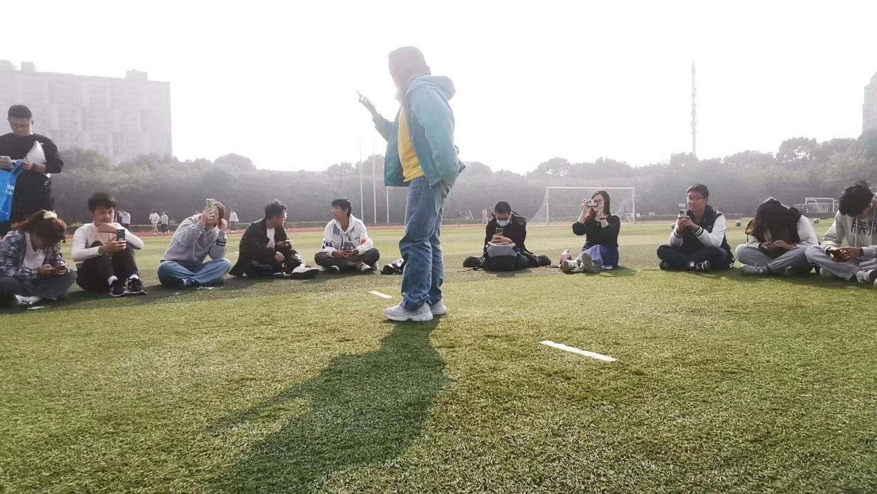 11月23日中午,23级环境工程1班在西操场举办了一场别开生面的户外班会。班主任石峰老师、辅导员张晓普老师参加了此次班会。石老师为了考验同学们彼此间的熟悉程度,组织大家开展了一些小型团建活动,例如,经典的击鼓传花,被抽中的两位同学要向全班互相介绍对方。有自带“社牛”属性的同学主动站出来做介绍,更有同学现场展示才艺。所有人围成圈坐在草地上,从开始略有拘束,到后面聊得不亦乐乎,整场班会氛围十分轻松活跃。班会结束后仍有同学拉着石老师继续交流。本次班会拉进了同学们之间的距离,增强了大一新生班的凝聚力,也增进了班主任和同学们之间的了解。这是一个好的开始!有很多同学踊跃提出了更多活动建议,大家已开始期待着下一次班级集体活动。