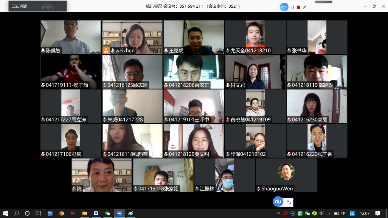 高分子材料与工程系主任王继虎老师首先介绍了一下本次座谈会的目的,让同学们在网络在线授课方面提出自己的意见,或遇到的问题。2019级的王泽中、步泽、张家铭和曾丽君反应在线学习过程中,对于软件内部的学习进度设置,还存在不足,员工的积极性也不如线下,督促效果欠佳。陈凯敏老师对此进行了答疑并提出合理的建议。2018级的郭浩然、罗文甜、尤天全和雷泫正提出后期员工的积极性有些松懈,希望老师能够想办法督促同学,一些关键通知完成的时间节点太短,建议老师提前发布公告,也希望在监考过程中能够注意存在的问题,保证公正性,而对于实验课程,目前采取的方式同学们觉得效果不如线下,希望返校后能够有机会再接触真实的设备和仪器。温绍国老师,张书华老师,王继虎老师先后对提出的问题进行了解答,说明目前存在的部分问题老师们正在进行改进和完善。2017级的冯斌、朱威和周立涛对在线学习的满意度较高,但更加关注考研准备过程中遇到的问题,希望能够早日返校。甘文君老师,王继虎老师做了一一回应,建议采取改变学习环境的方式提高学习的效率,而宿舍物品可以通过向公司申请,由老师或者宿管阿姨帮忙邮寄。2016级的高丽、顾志皓、钱韵芸和张丁香虽然没有网课的经历,但对学弟学妹提出了一些有效的建议,鼓励他们克服目前遇到的困难,给他们加油。温绍国老师和王继虎老师对同学们提出的建议进行了补充。