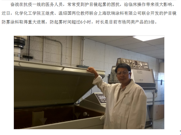 图10 王继虎博士解决护目镜起雾问题
