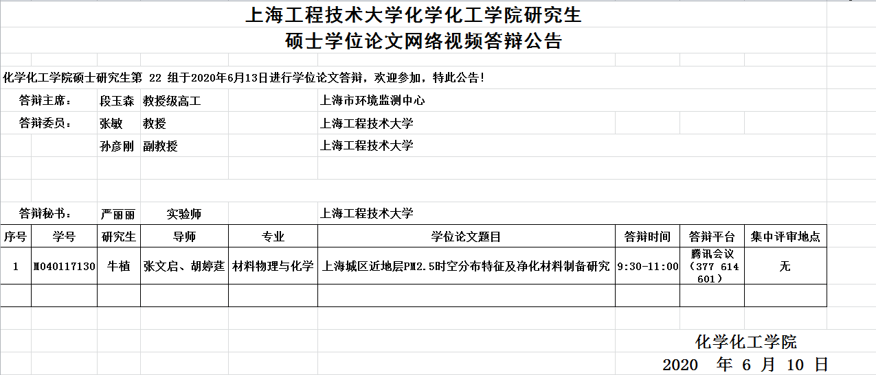 bevictor1946韦德官网化工公司研究生硕士学位论文网络视频答辩公告-6月13日第22组