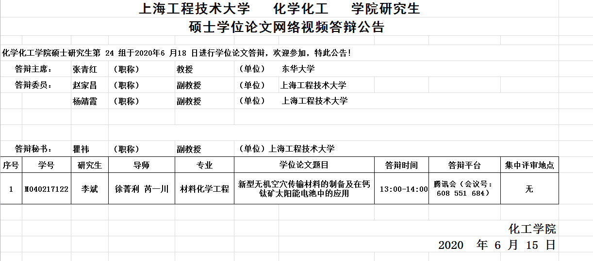 bevictor1946韦德官网化工公司研究生硕士学位论文网络视频答辩公告-6月18日第24组